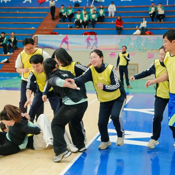 还记得竞技赛场上,那些咬牙坚持的瞬间——篮球赛后并肩擦拭汗水,气排球场上相互鼓励打气,羽毛球、乒乓球场上为彼此喝彩,拔河场上拼尽全力的坚守,每一份拼搏,都值得被铭记;还记得趣味赛场上,那些欢声笑语的时刻——大浪淘沙里的相互提醒,财源滚滚中的同步前行,摸石过河时的加油鼓劲,撕名牌时的默契配合,每一份欢喜,都值得被珍藏。